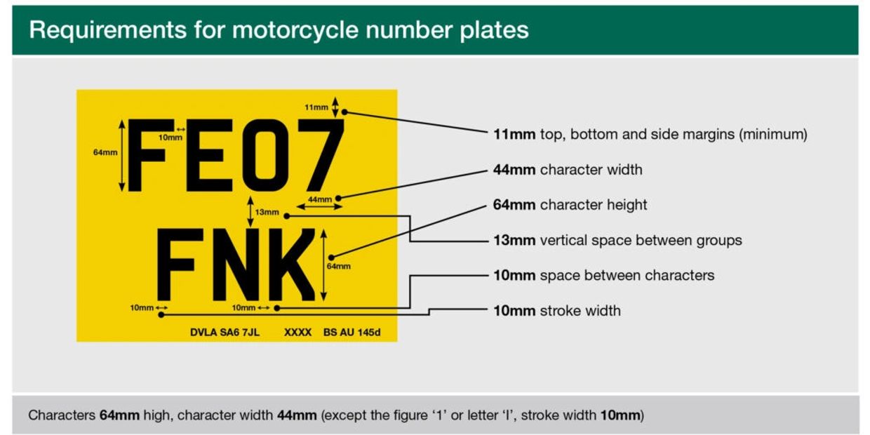 Above you will find all the information you need on the DVLA's requirements for motorcycle / square registration plates.